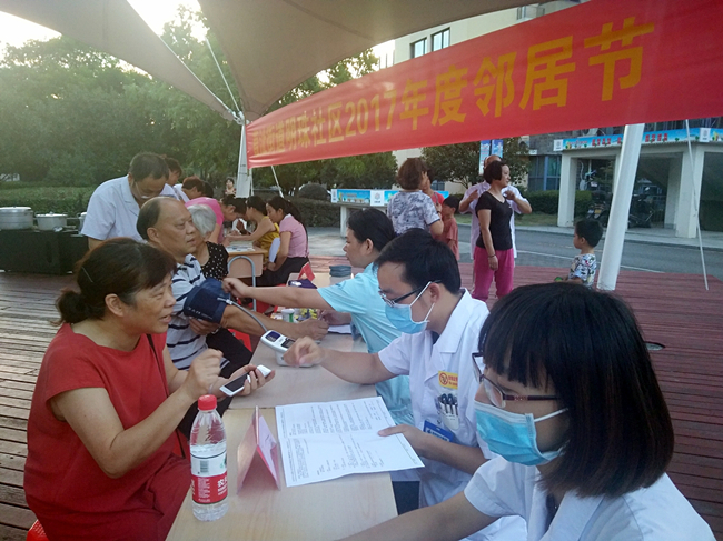 8月21日下午6时,碧海明珠社区邻居节热热闹闹地开幕了。作为结对服务单位,椒江民革应社区要求,积极调动资源,派出医疗义诊小分队奔赴社区开展送关怀活动。